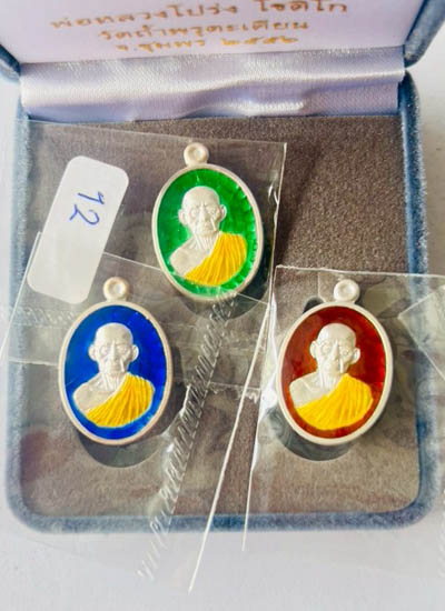 วัดใจ เหรียญรุ่นสารพัดดี หลวงพ่อโปร่ง โชติโก วัดถ้ำพรุตะเคียน จ.ชุมพร เนื้อเงินลงยา 3 สี เลข12