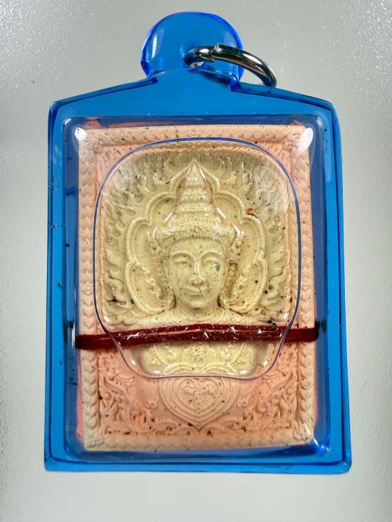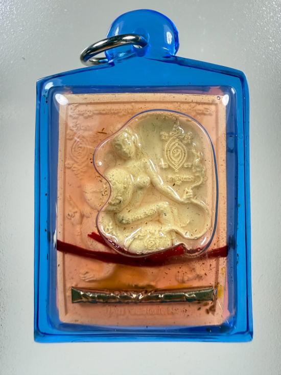 พ่อเพชรฯฟ้าเหลือง ผูกด้ายแดงมัดจิต ติดตะกรุดนักล่าเทพกามา เลี่ยมกรอบสีฟ้าแช่ในน้ำมันโค-ตะ-ระ เสน่ห์ สร้างเพียง 96ตน