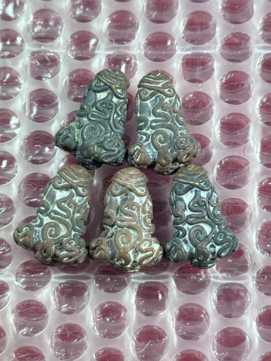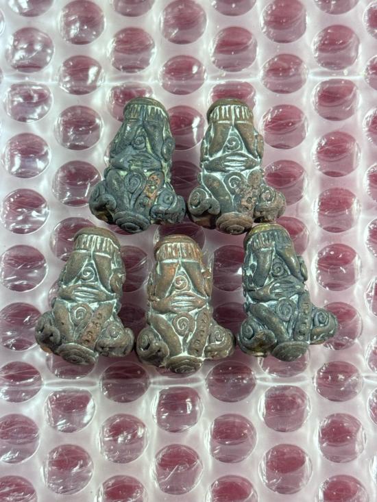 -วัดใจเคาะเดียวแดง-พระปิดตาเหนือดวง เนื้อสัมฤทธิ์ หลวงพ่อทอง วัดบ้านไร่ จ.นครราชสีมา / 5 องค์