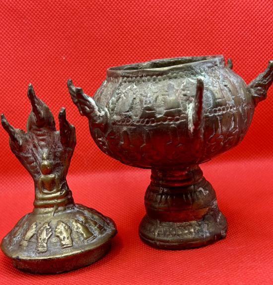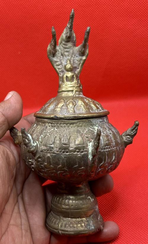 100 บาทครับ โถแป้งเจิม เนื้อโลหะ เก่ามาก ไม่ทราบทีครับ |