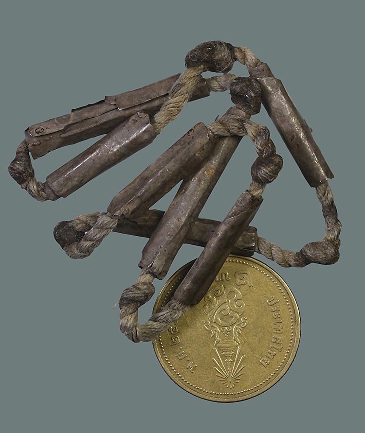 วัดใจ**เครื่องราง ตะกรุดชุด*{ เนื้อเงินเก่า 7.ดอก }*ไม่ทราบที่....ตามสภาพครับ |