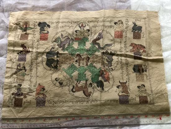 ชื่อพระเครื่อง เคาะเดียว 330 ผ้ายันต์**เขียนมือ เพ้นท์สี ยันต์เสน่ห์สายล้านนา ผืนใหญ่ขนาด23นิ้ว