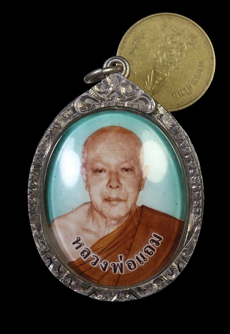 วัดใจ**เครื่องราง ล็อกเก็ตครึ่งองค์*{ รุ่นแรก }*ฉากเขียวใหญ่ หลังกะไหล่ทอง หลวงพ่อแถม วัดช้างแทงกระจาด จ.เพชรบุรี ปี2553*{ ข้างในบรรจุเกศา+มีรอยจาร }*เลี่ยมกรอบเงินสั่งทำ....สวยครับ
