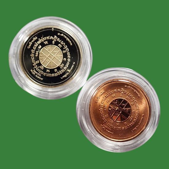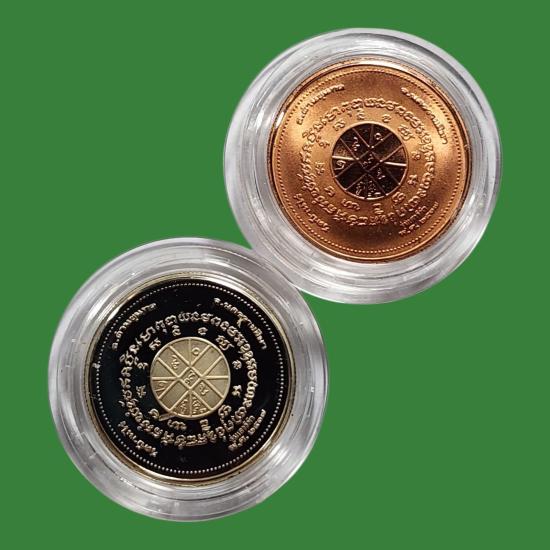 หลวงพ่อคูณ วัดบ้านไร่ รุ่นเสาร์ห้า พ.ศ.2537 เนื้อเงินขัดเงา + ทองแดงขัดเงา สภาพสวยตามรูป 2 องค์ |