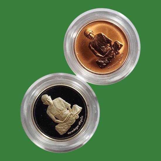 หลวงพ่อคูณ วัดบ้านไร่ รุ่นเสาร์ห้า พ.ศ.2537 เนื้อเงินขัดเงา + ทองแดงขัดเงา สภาพสวยตามรูป 2 องค์ |