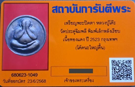 เหรียญพระปิดตา หลวงปู่โต๊ะ วัดประดู่ฉิมพลี พิมพ์เล็กหลังเรียบเนื้อทองแดง ปี 2523 กรุงเทพฯ (โค้ดนะใหญ่ตื้น)มาพร้อมบัตรรับรอง |