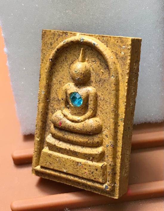 พระสมเด็จ หลังยันต์คาถา ชินบัญชร ( วัดสร้าง ) หลวงปู่ศิลา สิริจันโท ออกวัดโพธิ์ศรีสะอาด รุ่นชินบัญชร เนื้อเหลือง อกฝังพลอย NO 2771