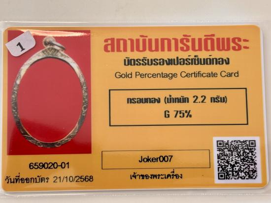 กรอบทองมือ2 ทรงไข่ หนัก2.2กรัม G75% พร้อมบัตร