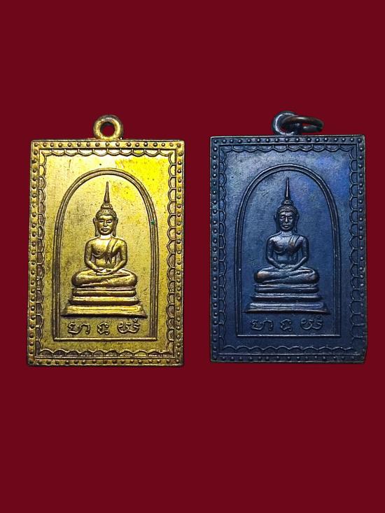 เหรียญพระพุทธนฤมิตร หลังเจดีย์ รุ่นแรก วัดอรุณ 2เหรียญ กะไหล่ทอง รมดำ