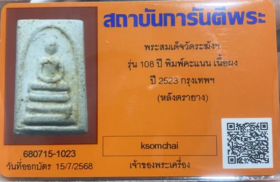 พระสมเด็จวัดระฆัง รุ่น108ปี พิมพ์คะแนน องค์นี้พิเศษหลังปั๊มตรายางซ้อน พร้อมบัตรการันตี