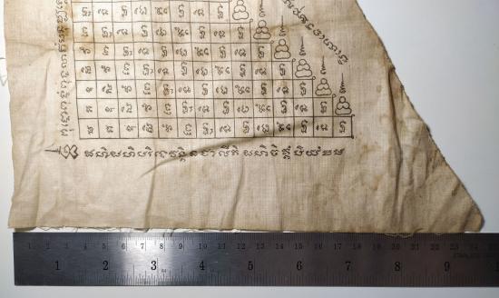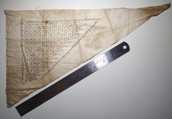 ผ้ายันต์พระฉิมพลี สีขาว เก่า ไม่ทราบที่
