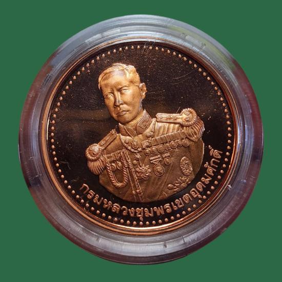 เหรียญทองแดงขัดเงา กรมหลวงชุมพร หลวงพ่อเงิน พ.ศ.2537 สภาพสวยตามรูป |