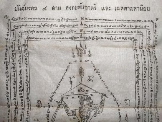 ผ้ายันต์หนุมาน มงคล 8 สาย วัดสุวรรณเจดีย์ อยุธยา พ.ศ. 2494 |