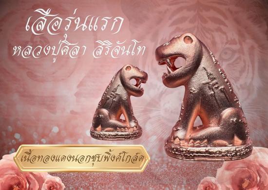 เสือรุ่นแรก หลวงปู่ศิลา สิริจันโท เนื้อทองแดงนอกชุปพิงค์โกล์พ่นทรายขัดเงา พิมพ์ใหญ่ ซีลเดิม ซีลเดิม รายการ 18 |