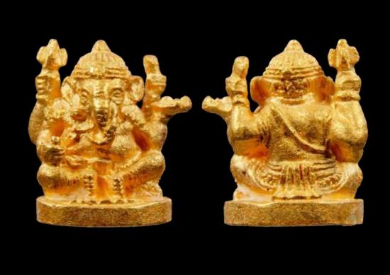 พระพิฆเนศวร หลวงพ่อเปิ่น วัดบางพระ รุ่นทิพย์เจ้าคุณ เนื้อทองคำ พร้อมกรอบทองคำฝังเพชรแท้พร้อมห้อยบูชา |
