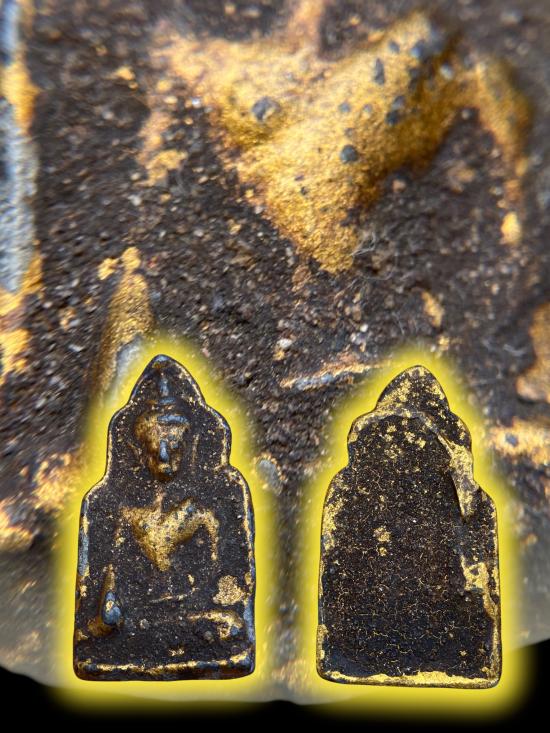 ****พระกรุเก่าพิมพ์ขนาดเล็ก เนื้อชินปรอทผสมตะกั่ว มีคราบทองเก่าปิดเดิมทั่วองค์ ผิวสัมผัสจัดจ้านตามธรรมชาติของพระกรุ มีรอยกร่อนจากอายุการฝังกรุยาวนาน ดูขลังและทรงพลังมาก เหมาะกับสายสะสมพระเนื้อเก่าหรือผู้ชอบพระแนวพุทธศิลป์ดั้งเดิม