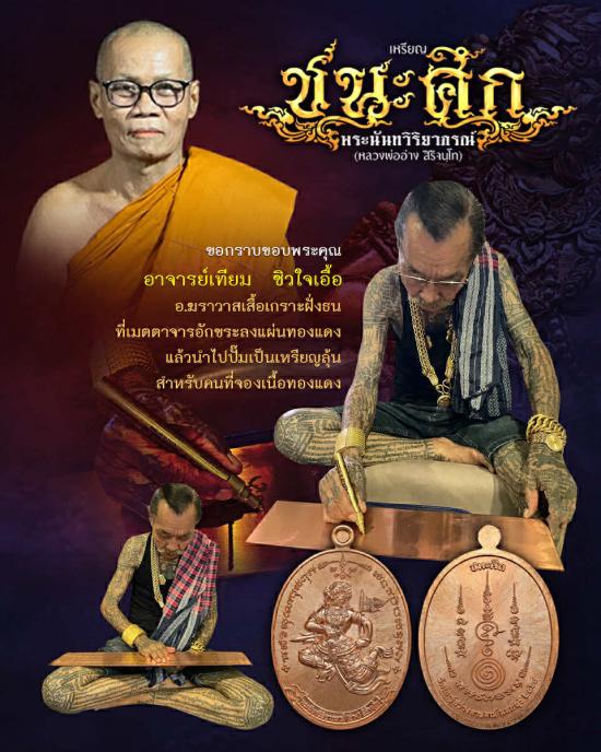 "เนื้อทองแดง (พิเศษ)" จารหมึกสีทอง จากแผ่นชนวนของ อ.เทียม วัดหนัง