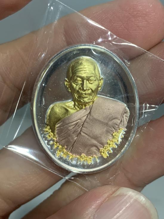 หลวงปู่มหาศิลา หลวงปู่ศิลา รุ่นอายุวัฒนมงคล พิมรุ่นแรก2 เนื้อเงิน3k เบอร์ 60 เลข2หลักสวยๆ