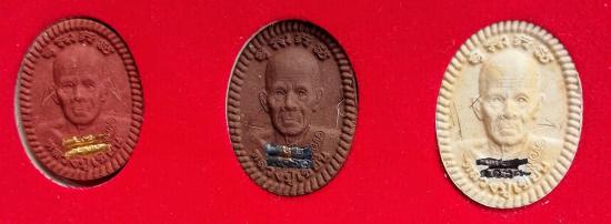 เคาะเดียวแดง.....พระผงดวงเศรษฐี (ชุดกรรมการ 3 องค์ ฝังตะกรุดทองคำและตะกรุดเงิน) หลวงปู่เขียน ที่พักสงฆ์ป่าช้าบ้านโพนสิม จ.อุบลราชธานี ปี 2558 พร้อมกล่องเดิม |