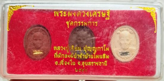 พระผงดวงเศรษฐี (ชุดกรรมการ 3 องค์ ฝังตะกรุดทองคำและตะกรุดเงิน) หลวงปู่เขียน ที่พักสงฆ์ป่าช้าบ้านโพนสิม จ.อุบลราชธานี ปี 2558 พร้อมกล่องเดิม |