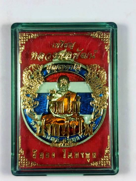 เหรียญจิ๊กโก๋ ปากน้ำโพ เนื้ออัลปากาพิมพ์2หน้า ลงยาธงชาต+ลงยาเขียวขอบแดง หมายเลข ๔๘๙๒ สร้างปี 2563 หลวงพ่อพัฒน์ วัดห้วยด้วน พร้อมกล่องเดิม |