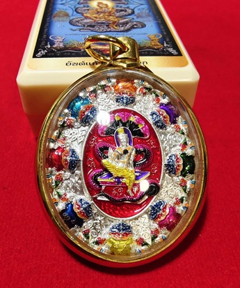 เหรียญ จตุคามรามเทพ รุ่น ปาฏิหาริย์เหนือดวง พระอาจารย์โชติ วัดพุทไธศวรรย์ อยุธยา เนื้อเงินลงยาพื้นแดง ลงยาเบญจรงค์ ฝังเพชรดำ จัดสร้าง 300 เหรียญ เป็นรายการที่ 2 หมายเลข 300(องค์สุดท้าย) เหรียญนี้อาจารย์พ่อท่านโชติได้จารลงยันต์เพิ่มให้อีกด้วยครับ เลี่ยมกันน้ำใส่กรอบผ่าหวายทองอิตาลี่ พร้อมกล่องเดิม