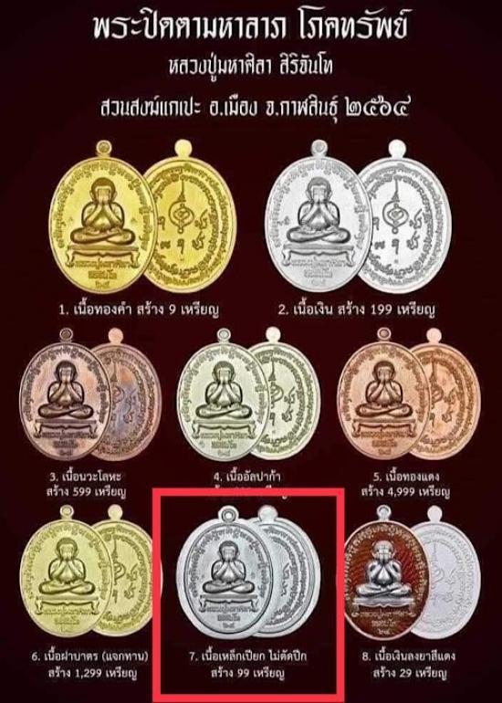 หลวงปู่มหาศิลา ปิดตามหาลาภ โภคทรัพย์ ยุคต้น ปี64 เนื้อเหล็กเปียก ไม่ตัดปีก เลข62=8 กล่องเดิม หมุนเวียนน้อย นิยมคัดสวยๆ |
