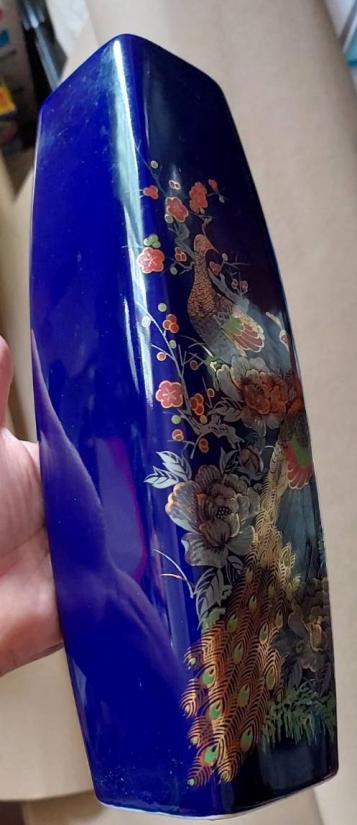 ***วัดใจ***แจกันเซรามิกญี่ปุ่น รูปทรง สี่เหลี่ยม ของสะสม สูงประมาณ 29 ซม. เส้นผ่านศูนย์กลาง 6.5 ซม. ลายนกยูงเส้นทอง |