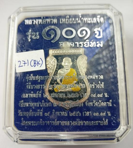 เหรียญเสมาหน้าเลื่อน หลวงพ่อทวด 101ปี อ.ทิม เนื้อเงินลงยาสีดำ เบอร์ 271 พร้อมกล่องเดิมครับ (BK)