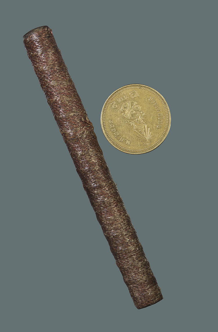 วัดใจ**ตะกรุดถักเชือกเนื้อทองแดงเก่า ยาว 3.5นิ้ว ไม่ทราบที่....เดิมๆครับ