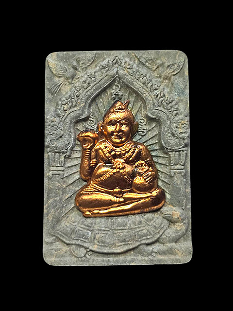 ชื่อพระเครื่อง ***กุมารทองกวักมหาลาภ หลวงพ่อดำ วัดสันติธรรม จ.สระแก้ว เนื้อผงใบโพธิ์ หน้ากากทองแดง***