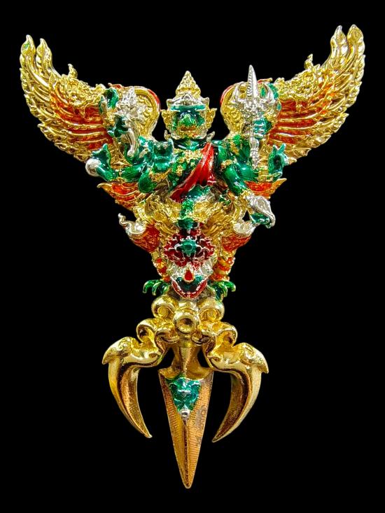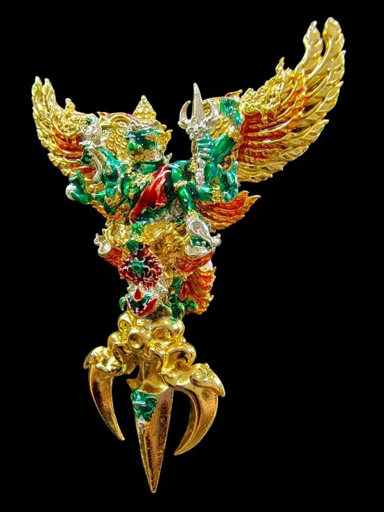 พญาครุฑ วัชระพญาสุบรรณมังรายศาสตร์ " เศรษฐีอนันตทรัพย์ " ครูบาวิรุต ญาณสํวโร วัดสันมะเหม้า อ.พาน จ.เชียงราย พิมพ์เล็ก (สูงประมาณ 5 เซนติเมตร) เนื้อสัมฤทธิ์ล้างเงินลงยา หมายเลข ๒๓๐ พร้อมกล่องเดิม (ราคา |