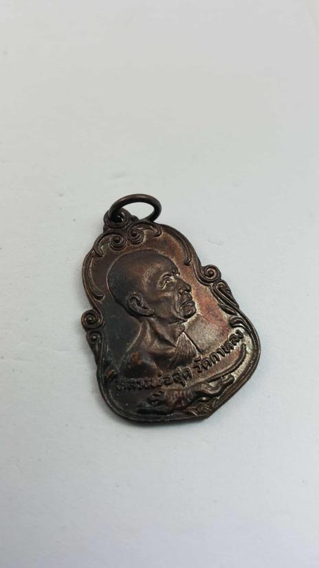 เหรียญหันข้าง (น้ำเต้าเสือกระโจน) อายุ ๘๐ปี หลวงพ่อสุด วัดกาหลง สมุทรสาคร ปี๒๕๒๕ เนื้อทองแดง |