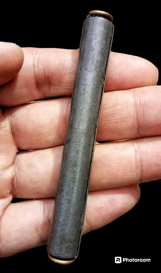 ตะกรุดหมุนได้ เนื้อ 3 กษัตริย์(ตะกั่ว-ทองเหลือง(อั่ว)-ทองแดง(ไส้)) เหมาติดมาไม่ทราบที่? |