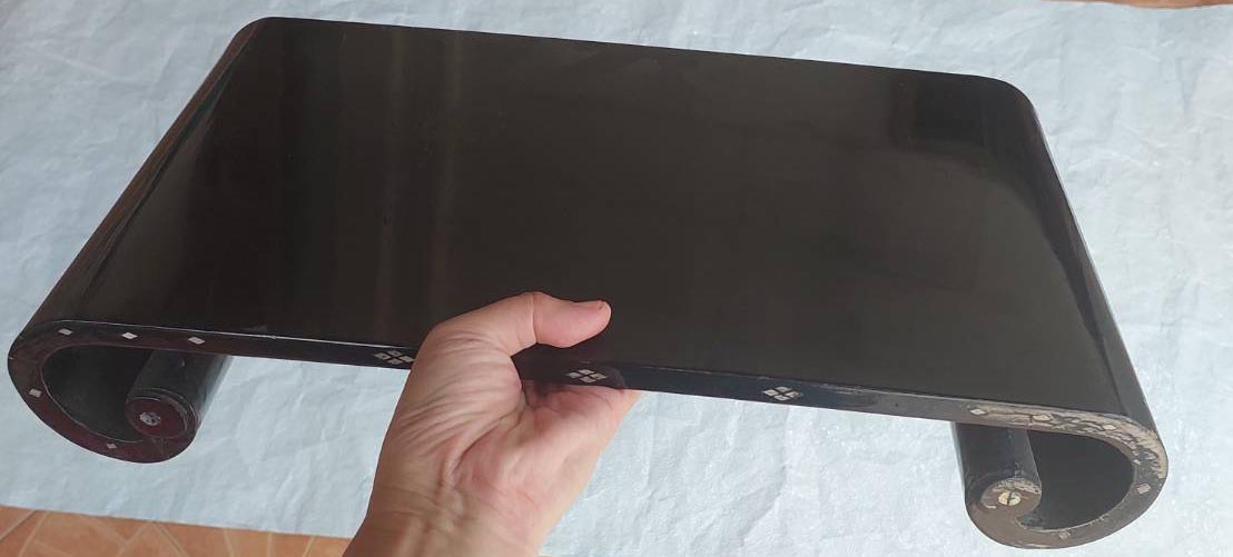 ***วัดใจ***กี่ไม้สีดำประดับมุก ฐานรองพระไม้เก่างานนอกมือสองขนาด กว้าง 10 นิ้ว สูง 3 นิ้ว ยาว 17.5 นิ้ว ดีเทลจากญี่ปุ่น ผลิตในญี่ปุ่น |