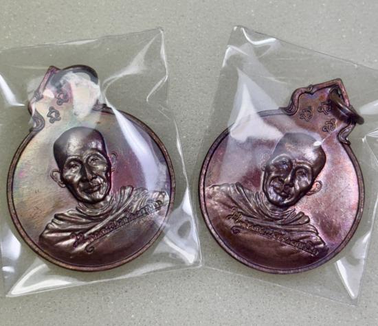 หลวงพ่อเกษม เขมโก รุ่นลายเซ็นต์ ปี 2529 เนื้อทองแดง ผิวปรอท รุ้งๆๆ สภาพสวย (รับพระ 2 เหรียญ)