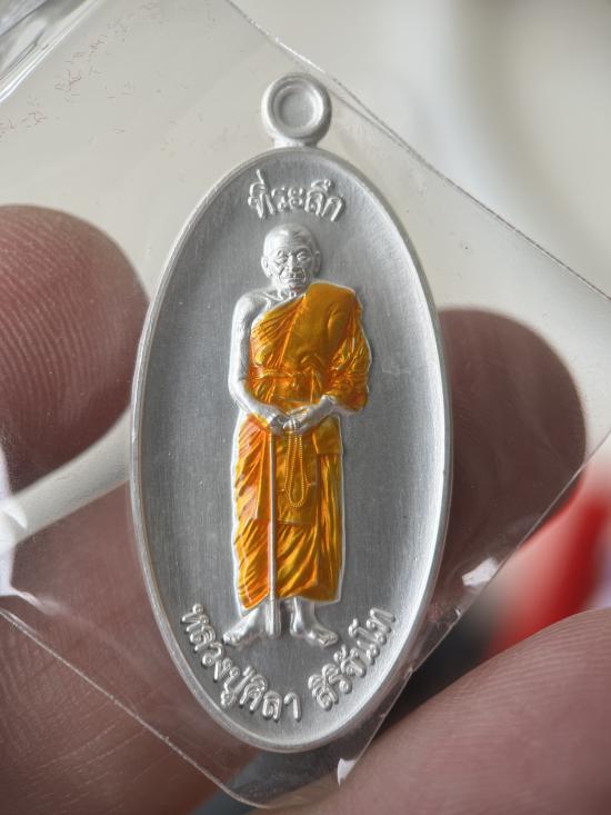 เหรียญยืนอายุวัฒนมงคล81 หลวงปู่มหาศิลา สิริจันโท เนื้อเงินลงยาจีวร เบอร์ 227