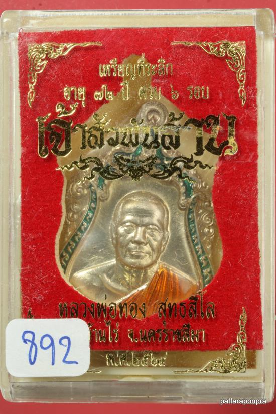 เหรียญหลวงพ่อทอง รุ่นเจ้าสัวพันล้าน ปี 2564 เนื้ออัลปาก้าลงยา มีจาร หมายเลข 892 |