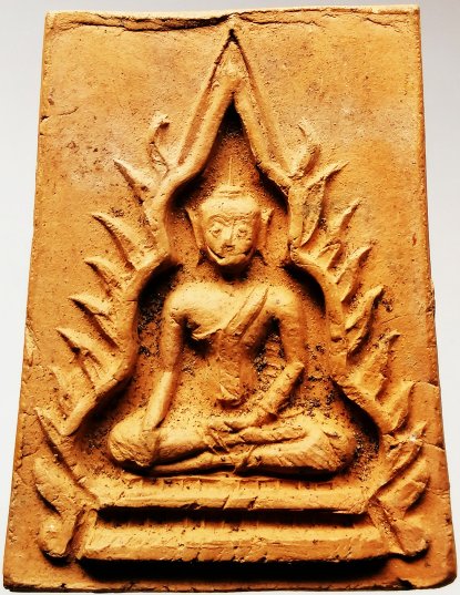 << วัดใจ >> พิมพ์พระพุทธชินราช ปางมารวิชัย กรุวัดทับผึ้ง อ.ศรีสำโรง จ.สุโขทัย หลังเรียบ