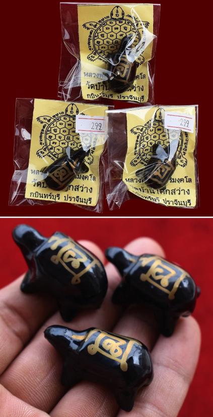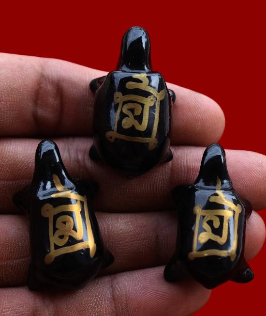 ชุด 3 ตัว...พญาเต่าจ้าวทรัพย์ เนื้อผงจุ่มรัก (หลวงพ่อจารยันต์เองทุกตัว) ปี 2558 หลวงพ่อผิน วัดโคกสว่าง จ.ปราจีนบุรี พร้อมซองเดิมจากวัด สภาพพระตามรูปที่ลงทุกประการ (ขนาดเต่าประมาณ 3.6 3.9 ซม. หลวงพ่อปั้นมือทีล่ะองค์ ขนาดจึงไม่แน่นอน)