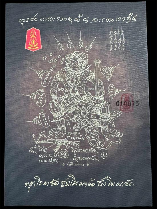 เคาะเดียว 250 ผ้ายันต์พหูรมานสีดำ no.010075 แม่ทัพภาคที่2.ทำแจกทหารชายแดนรอบที่2.หลวงปู่เมตตาอฐิฐานจิตเสกเดี่ยวอย่างเข้มขลัง(ผ้าแคนวาสสกรีนตรากองทัพภาคที่2)รันเลขนัมเบอร์พร้อมประทับหมึกเเดงตรากองทัพ |