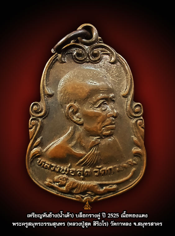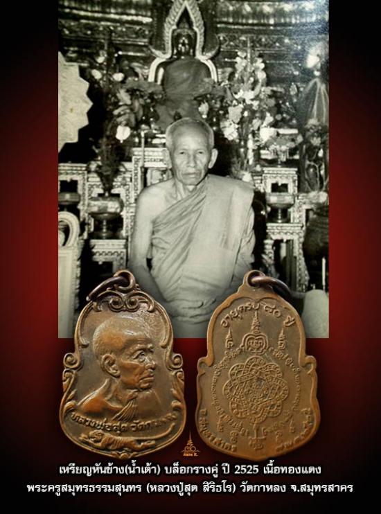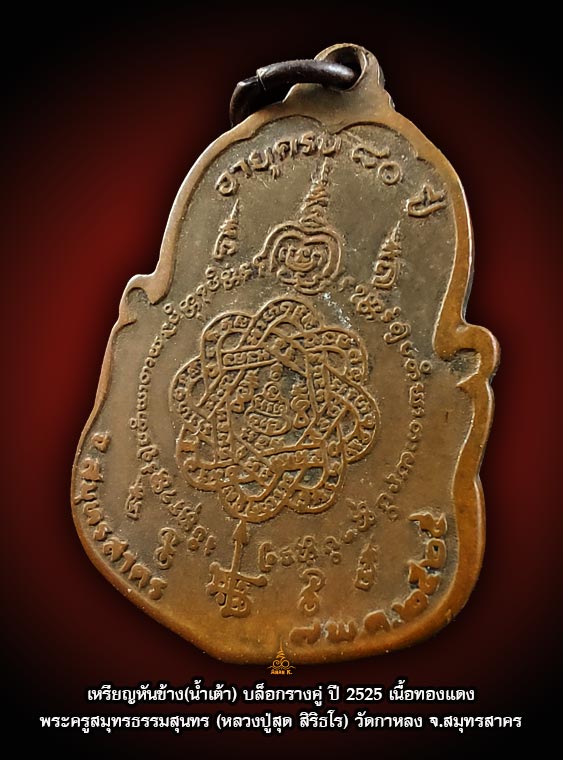เหรียญหันข้าง (น้ำเต้า) อายุครบ ๘๐ปี หลวงพ่อสุด วัดกาหลง สมุทรสาคร ปี๒๕๒๕ เนื้อทองแดง |