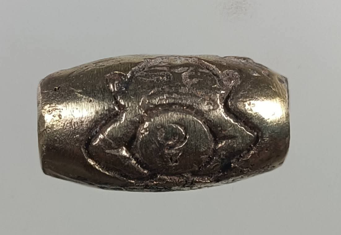 ลูกสะกด ยันต์พระราหู รุ่นสุริยุปราคา ปี 2538 หลวงพ่อเกษม เขมโก เนื้อชินปรอท ด้านในสอดตะกรุด **3