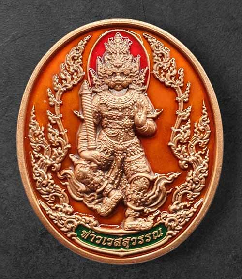 เหรียญท้าวเวสสุวรรณ รุ่น ยกฐานะ พลิกชีวิต เนื้อทองแดงซาติน ลงยาสีส้ม หมายเลข 27 เจ้าคุณพัฒน์ ปุณญกาโม วัดห้วยด้วน จังหวัด นครสวรรค์ |