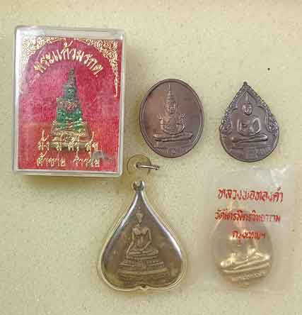 พระพระแก้วมรกต 3 องค์ +เหรียญพระพุทธชินสีห์ใบโพธิ์ วัดบวรนิเวศวิหาร ปี 16 +เหรียญหลวงพ่อทองคำ วัดไตรมิตรวิทยาราม กทม. |