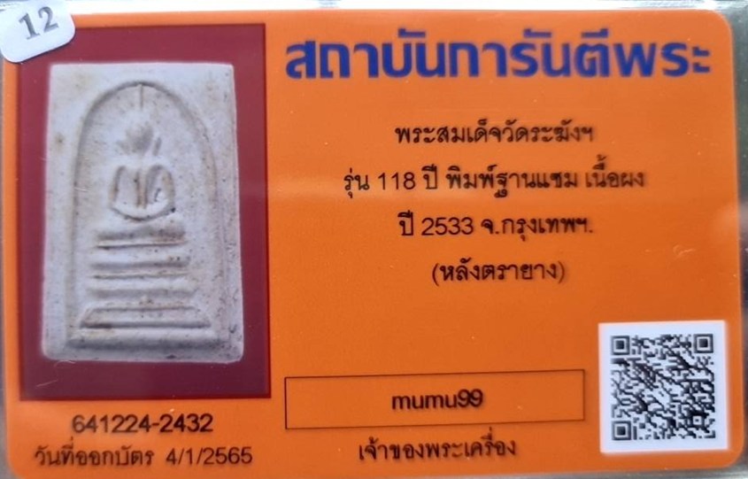 ## สมเด็จวัดระฆัง อนุสรณ์ 118ปี พ.ศ.2533 พิมพ์ฐานแซม "พระสวยเดิมไม่ผ่านการใช้.หลังปั้มตรายาง...พร้อมบัตรรับรอง.""รับประกันแท้ตลอดฃีพและแท้ตามมาตรฐานสากล....... อนาคตดี ถูกๆเลยครับ.... ราคายังไม่แรง.......แท้...ถูก...ดี...น่าเก็บมาก... |