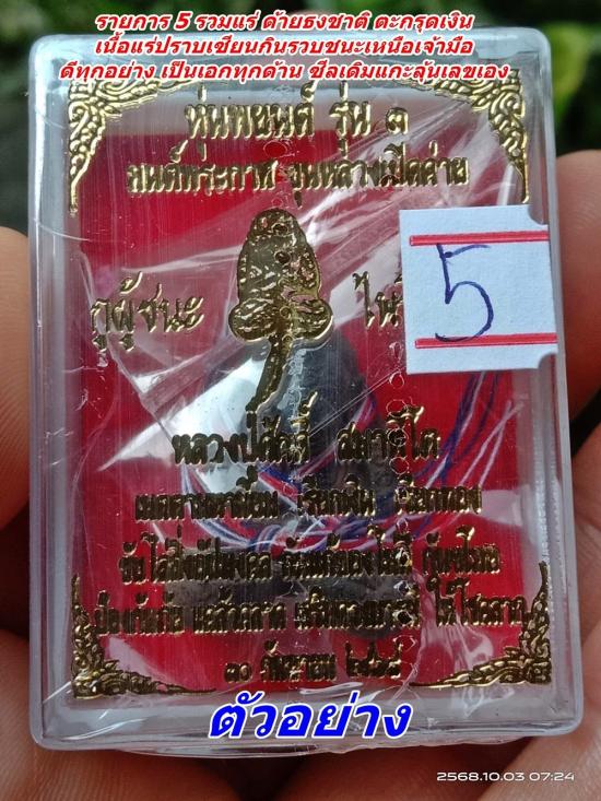 หุ่นพยนต์ รุ่น 3 กูผู้ชนะ ปราบไพรีพินาศ หลวงปู่ศักดิ์ สมาหิโต รายการ 5 รวมแร่ ด้ายธงชาติ ตะกรุดเงิน เนื้อแร่ปราบเซียนกินรวบชนะเหนือเจ้ามือ ดีทุกอย่าง เป็นเอกทุกด้าน ซีลเดิมแกะลุ้นเลขเอง 1 องค์ |