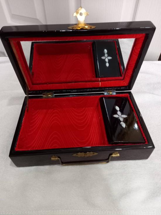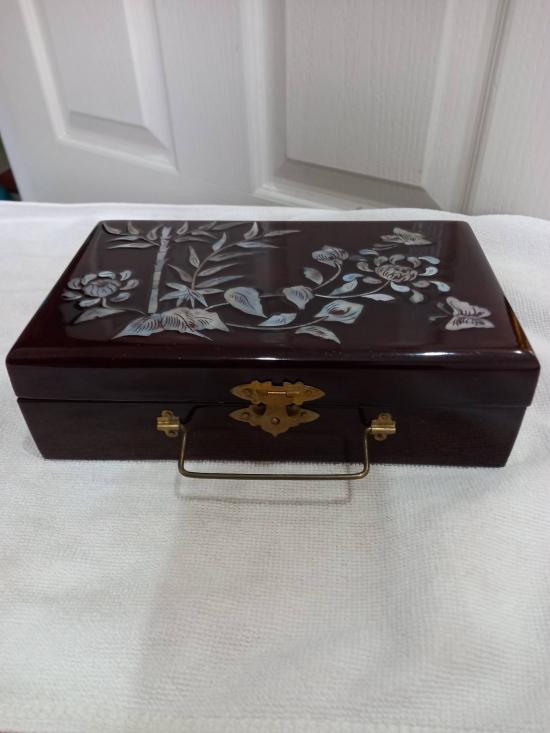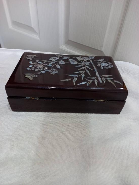 กล่องไม้ประดับมุก ใส่เครื่องประดับ เหรียญพระเครื่อง งานวินเทจ (ขนาดกล่องยาว 8นิ้ว /กว้าง5นิ้ว/หนา2.5นิ้ว)สวยสมบูรณ์ เคาะเดียว |