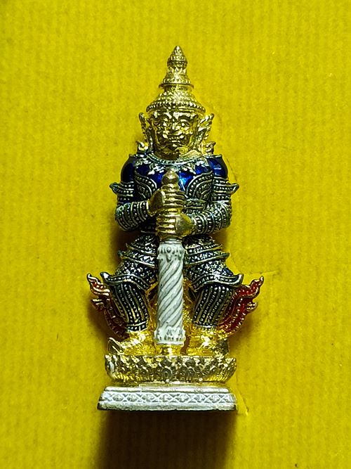 " วัดใจ เคาะเดียวแดง " ท้าวเวสสุวรรณ เทวานฤมิตร ปี 2563 หลวงพ่อพัฒน์ ปุญญกาโม วัดห้วยด้วน จ.นครสวรรค์ เนื้อทองทิพย์ ลงยา 3 สี หมายเลข 725 (ขนาดห้อยคอครับ สูงประมาณ 3.5 ซม.)