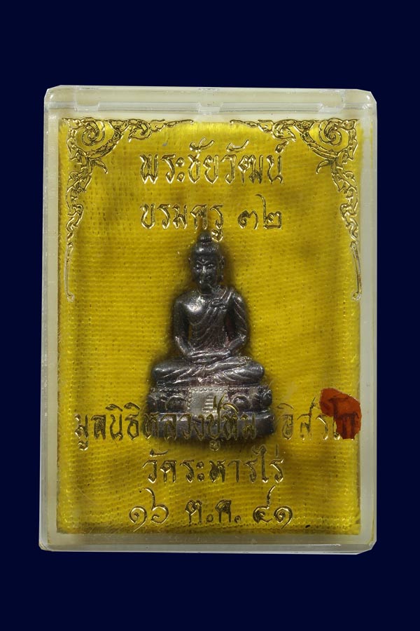 พระชัยวัฒน์ พิมพ์พระพุทธมหามงคลมุนี เนื้อสัมฤทธิ์ ก้นอุดผงพราย พิธีบรมครู 32 พร้อมกล่องเดิม |